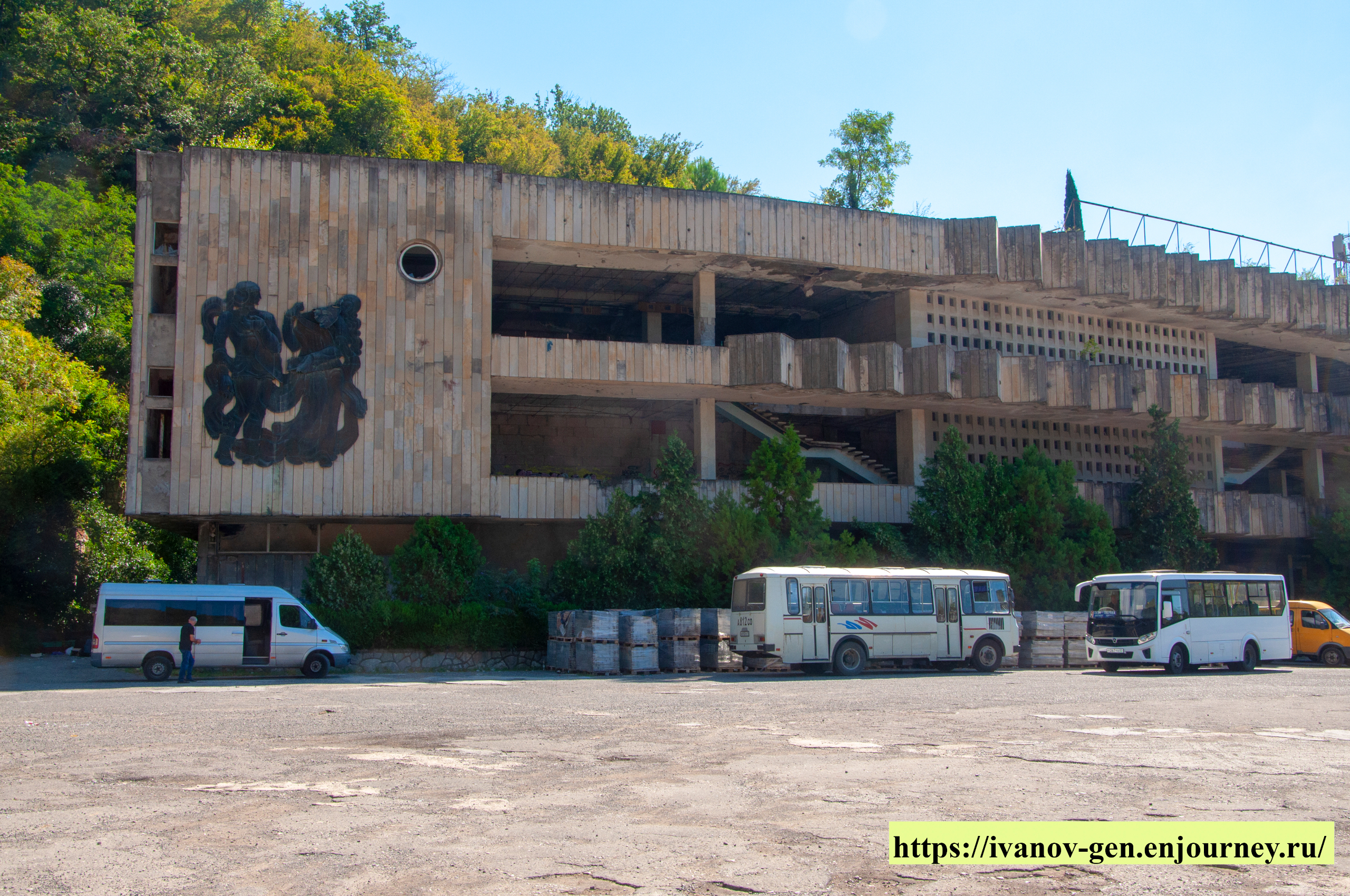 Зимний театр он же кинотеатр Гагра. Был заброшен, но вроде начали восстанавливать.